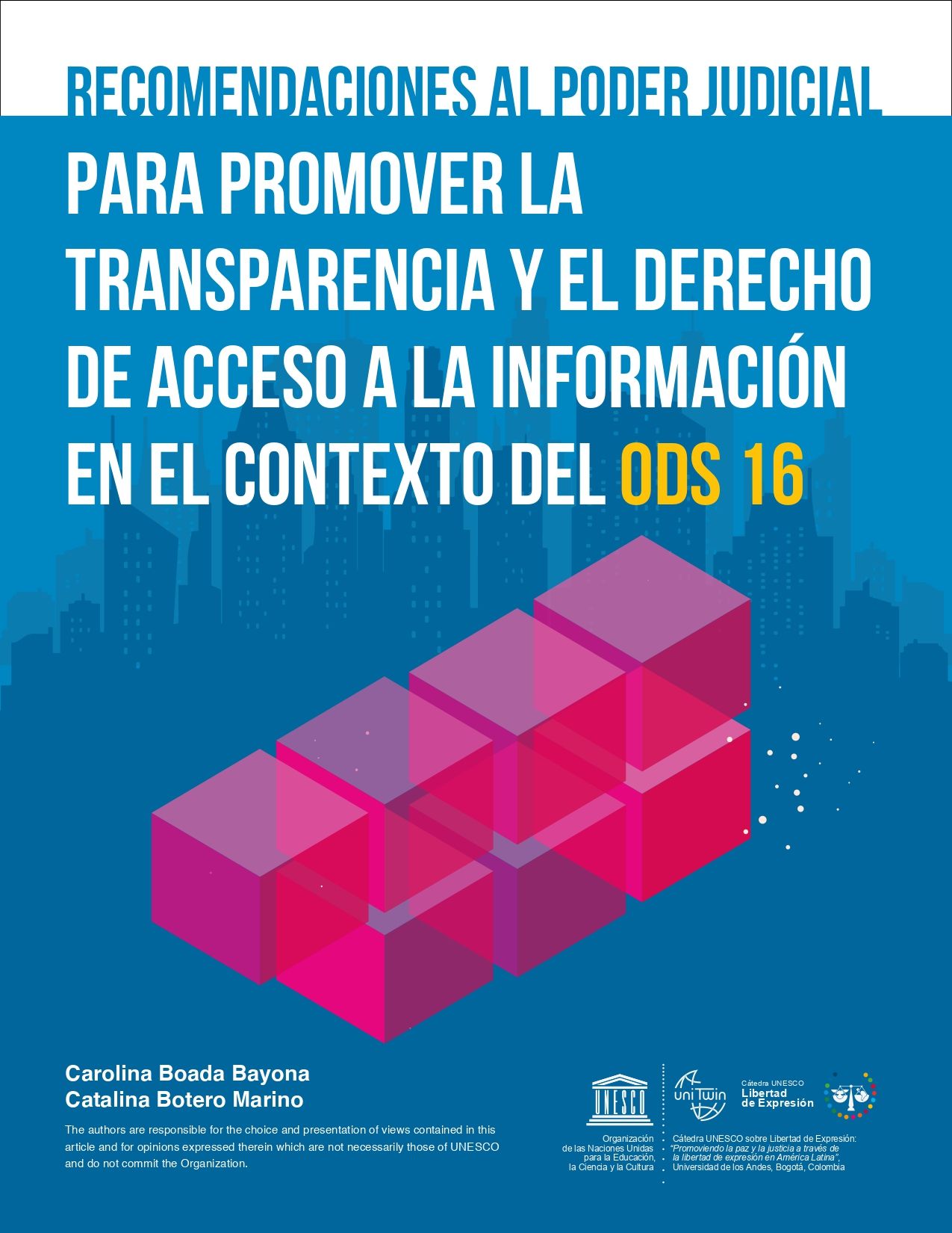 Boada Bayona, Carolina., & Botero Marino, Catalina. (s. F.). Recomendaciones al poder judicial para promover la transparencia y el derecho de acceso a la información en el contexto del ODS 16. UNESCO. Cátedra UNESCO sobre libertad de expresión y acceso a la información, Universidad de Los Andes